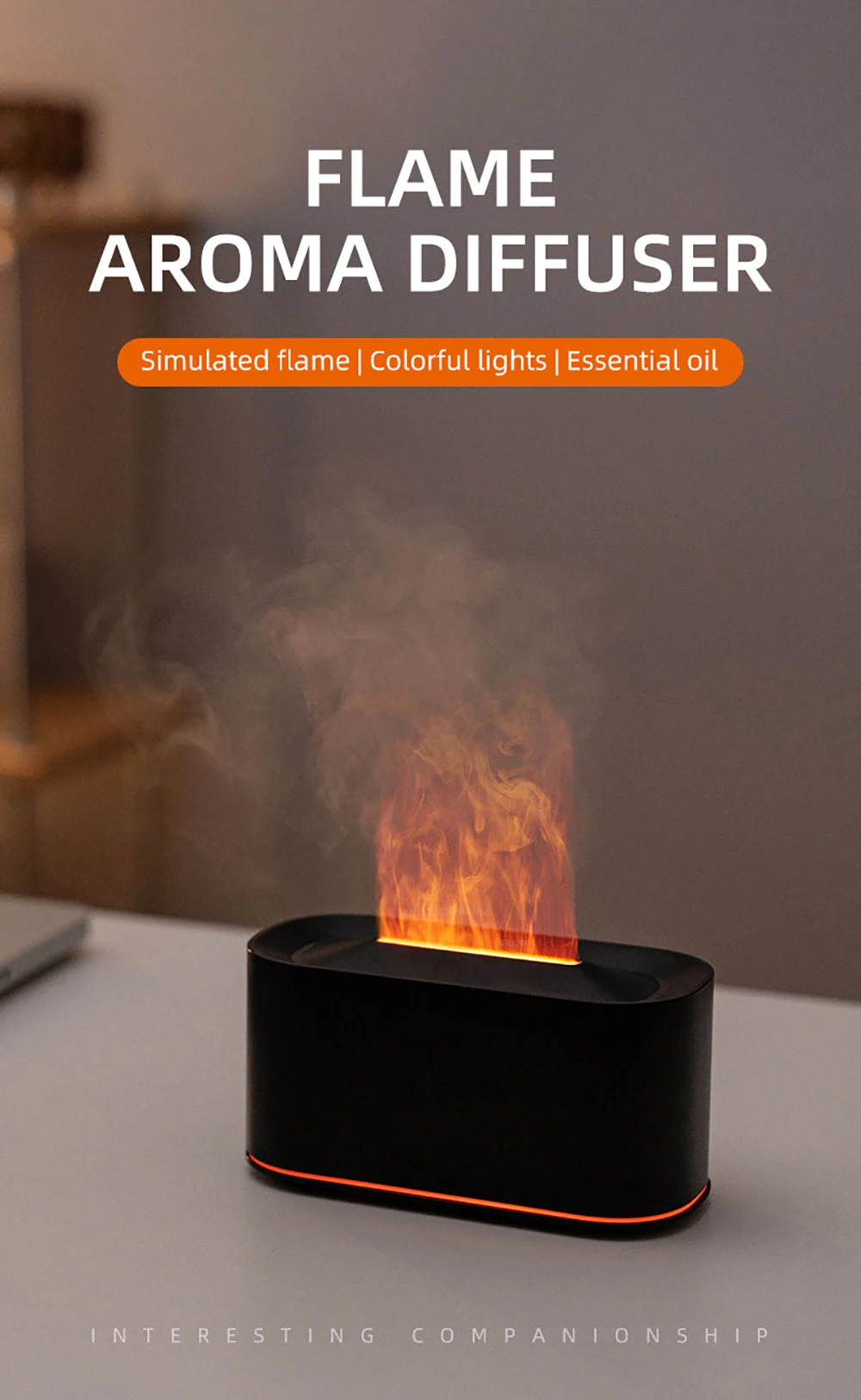 Aroma Diffuser Flame Air Humidifier USB Desktop for Household Bedroom Fragrance Essential Oil Diffuser with Colorful Night Light