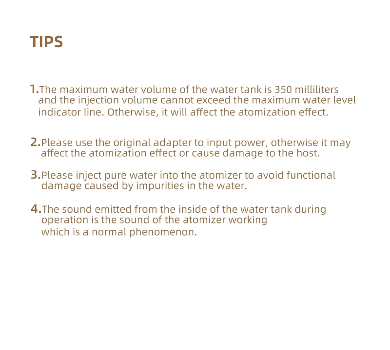 Adjustable Spray Amount (10 - 30mL/h): With a spray amount range of 10 - 30mL/h, you can adjust the intensity of the mist and aroma to meet your personal preferences and different space requirements.
