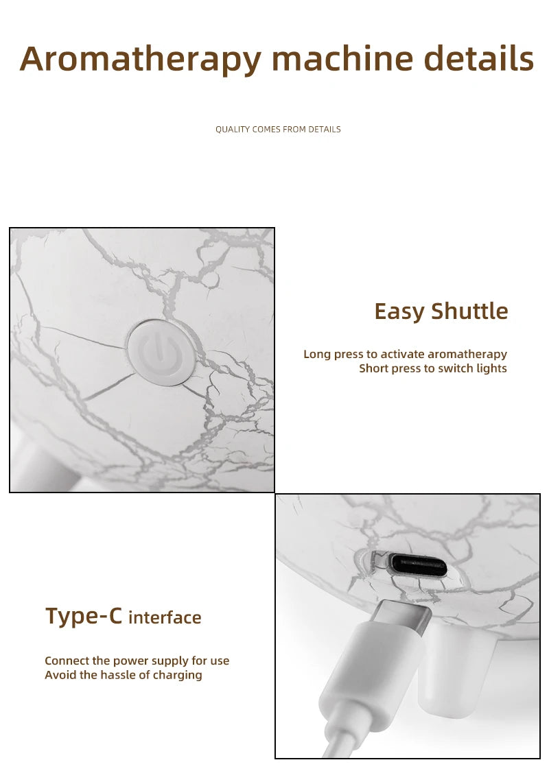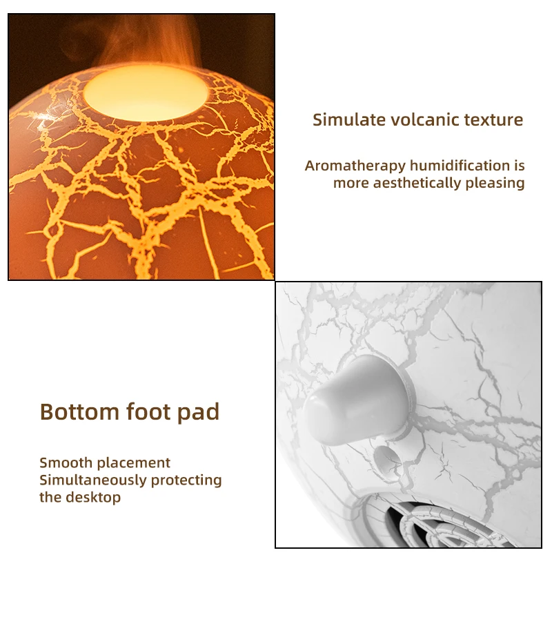 Features: Volcanic Texture,Flame Spray,Aromatherapy Machine,Silent,Sleep Aid,Relax,Moisturizing